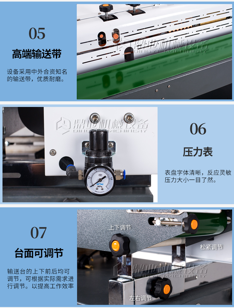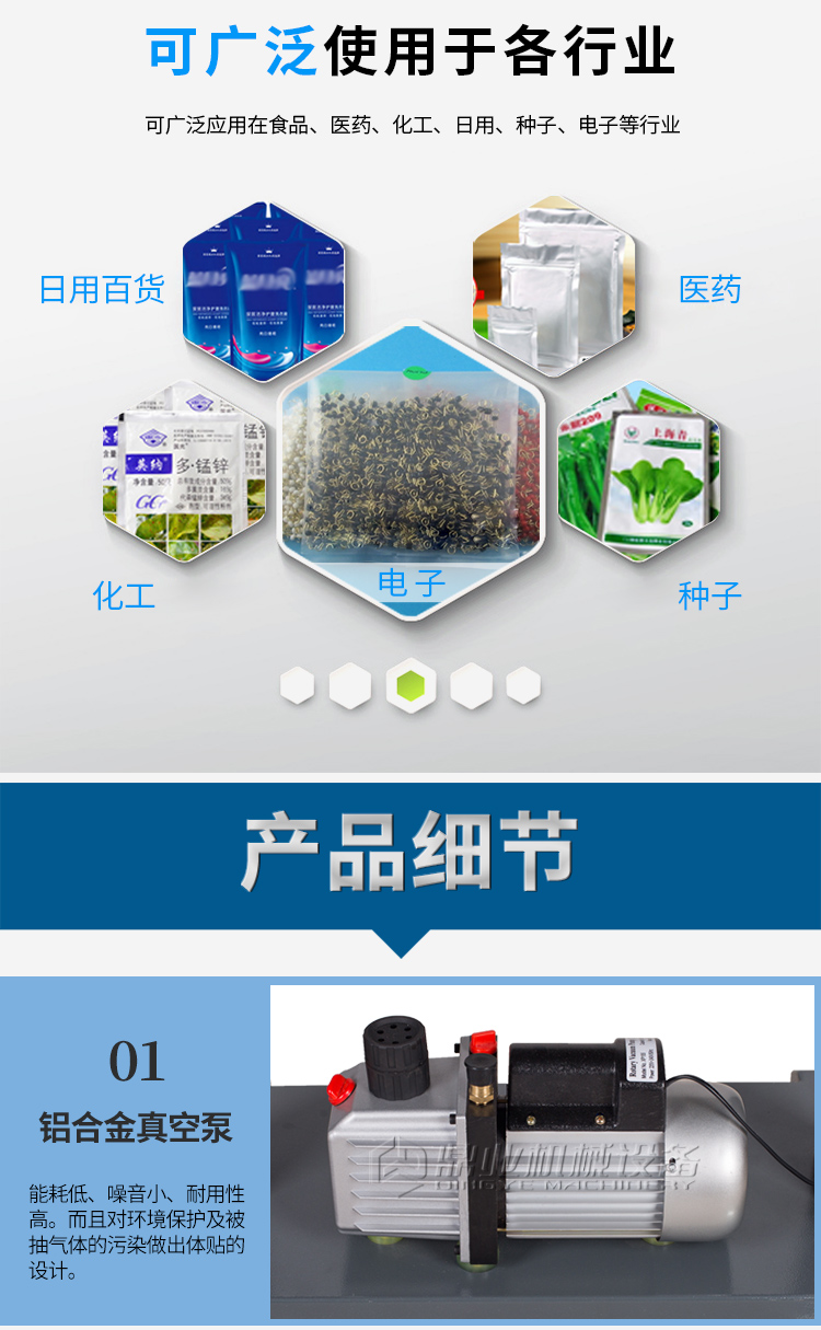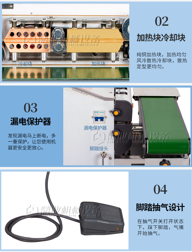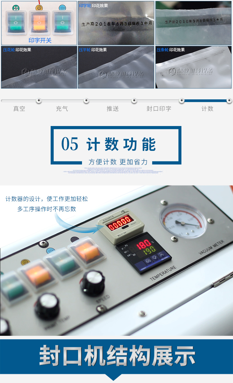 LF1080系列連續(xù)式真空抽氣/充氣封口機。是本公司在廣泛吸取國外同類產(chǎn)品和真空機之精華的基礎(chǔ)上研制的專利產(chǎn)品,該產(chǎn)品是根據(jù)市場需求而設(shè)計的新一代真空、推送、封口、印字集一體的連續(xù)式包裝機,該機結(jié)構(gòu)簡單新穎,外觀美麗時尚、功能齊全,自動化程度高,能大幅度減輕操作人員的勞動強度。具有安全可靠,操作簡便,真空度高,熱合快捷封口美觀、牢固等優(yōu)點。
